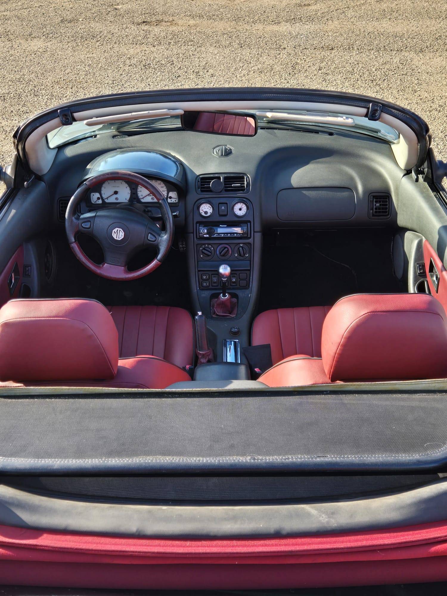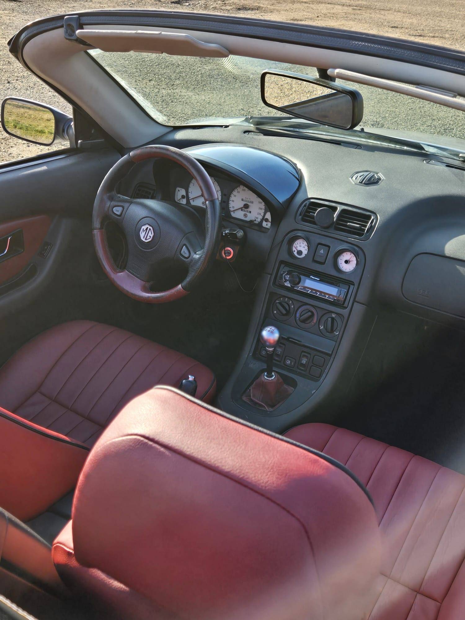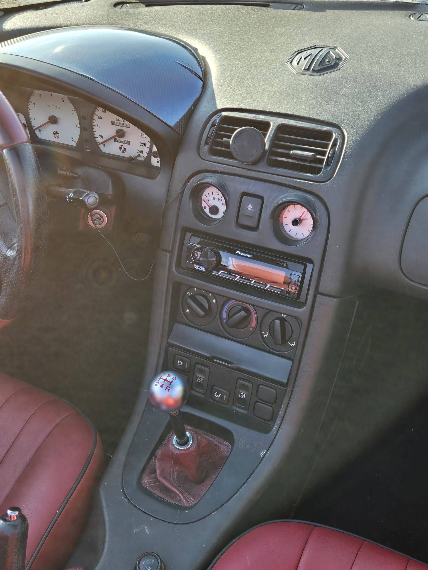 Quelques frais sont à prévoir : l'aiguille de température d'eau ne fonctionne plus, mais le refroidissement fonctionne parfaitement et a été vérifié entièrement en garage. Voyant airbag reste allumé (commun sur les MG F probablement à cause du branchement sous les sièges). Un des boutons pour le chauffage qui tourne dans le vide (celui de droite).